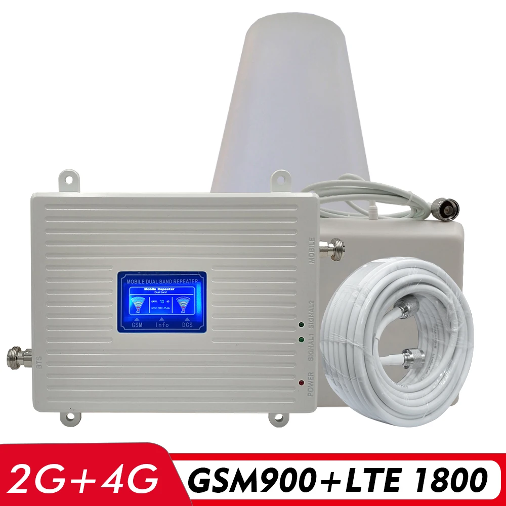 Big Promo 65dB Gain 2G 3G 4G Dual Band Booster GSM 900+DCS/LTE 1800 FDD LTE 1800MHz Cell Phone Signal Repeate